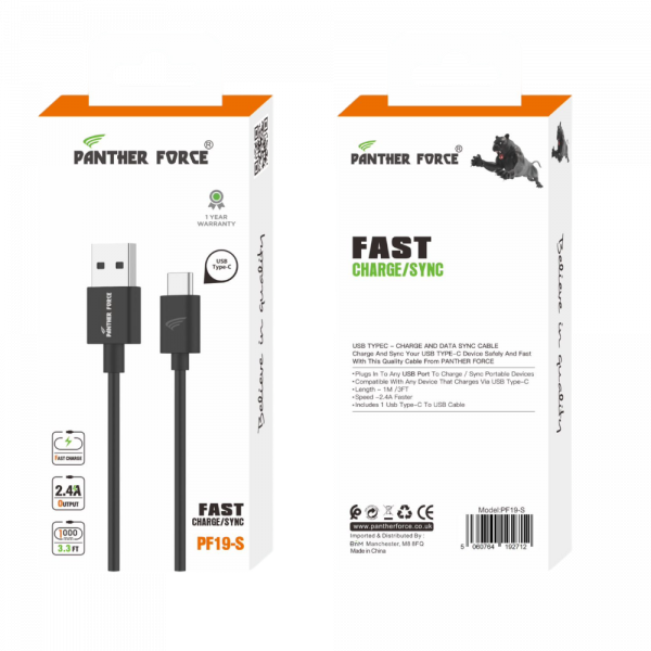 Unlock a new level of efficiency with the Panther Force 1M Cable for Type-C. Expertly crafted for fast charging and