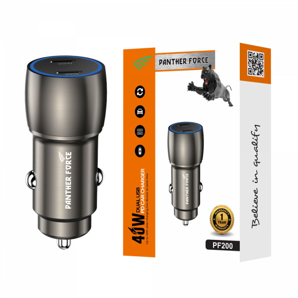 PF200 – Panther Force 40W Car Charger – Dual USB-C Ports
