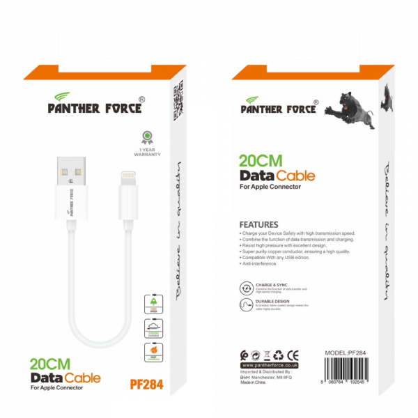 PF284- Panther Force 20cm Data Cable Apple Connector – Fast Charging and Data Transfer
