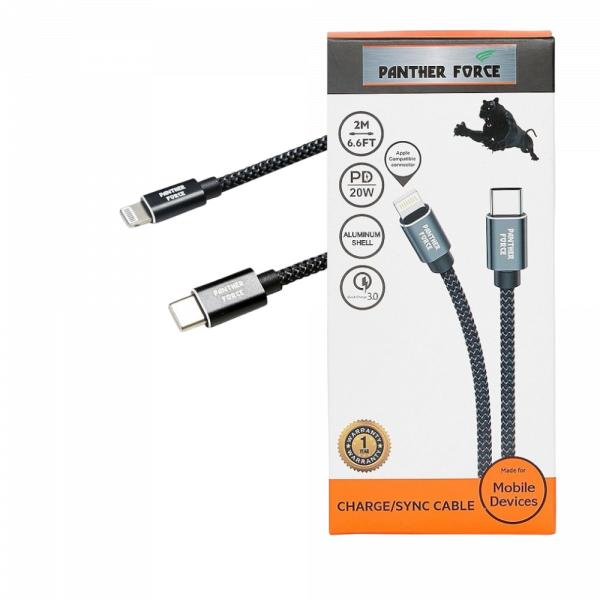 Experience seamless charging and efficient data transfer with the Panther Force Fast PD Charge/Sync USB-C to Apple Compatible Cable. Designed