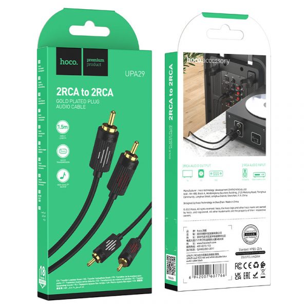 Cable 2×RCA to 2×RCA “UPA29” audio transfer