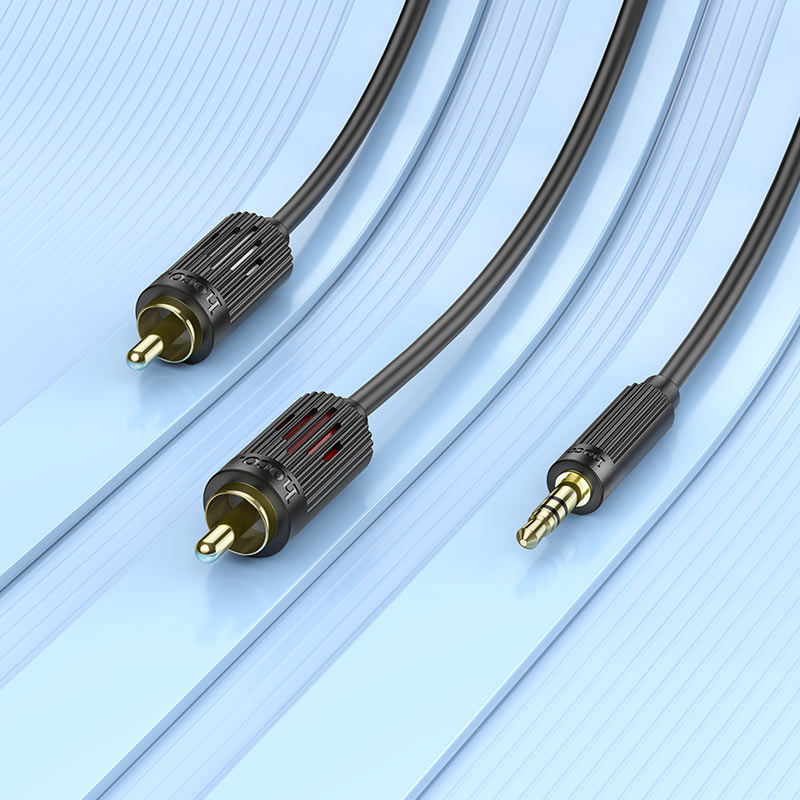 UPA28, audio cable 3.5mm male to dual RCA male, fast and lossless transmission, long lifespan, PVC sheath and gold-plated connectors