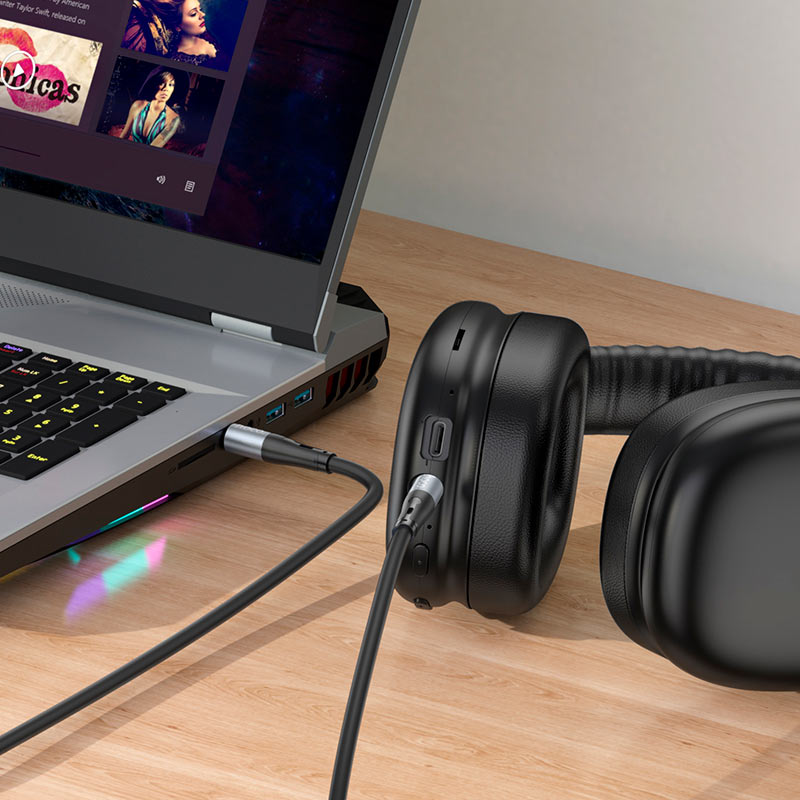 UPA22, AUX audio cable for 3.5mm male to male, silicone braid, aluminum alloy connectors, 1m