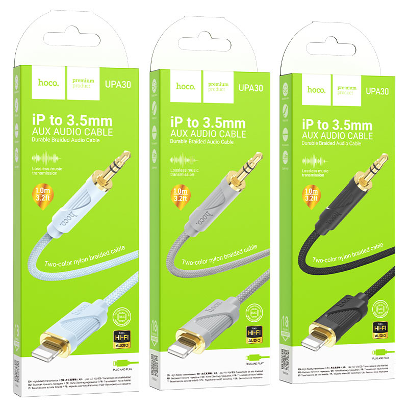 UPA30 Friend, audio cable 3.5mm male to iP male, DAC digital decoding chip, Hi-Fi lossless transmission, long lifespan, nylon braid and gold-plated 3.5 mm connector