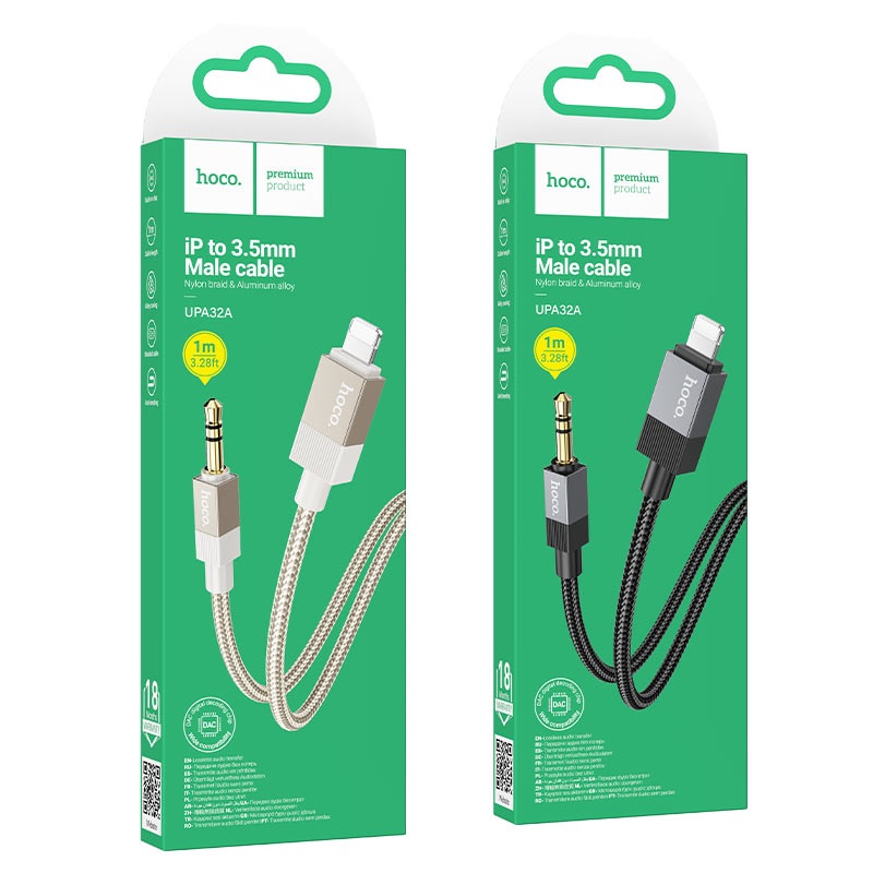 UPA32A Clever, audio cable 3.5mm male to Lightning male, DAC digital decoding chip, Hi-Fi lossless transmission, long lifespan, nylon braid and aluminum alloy connectors shell
