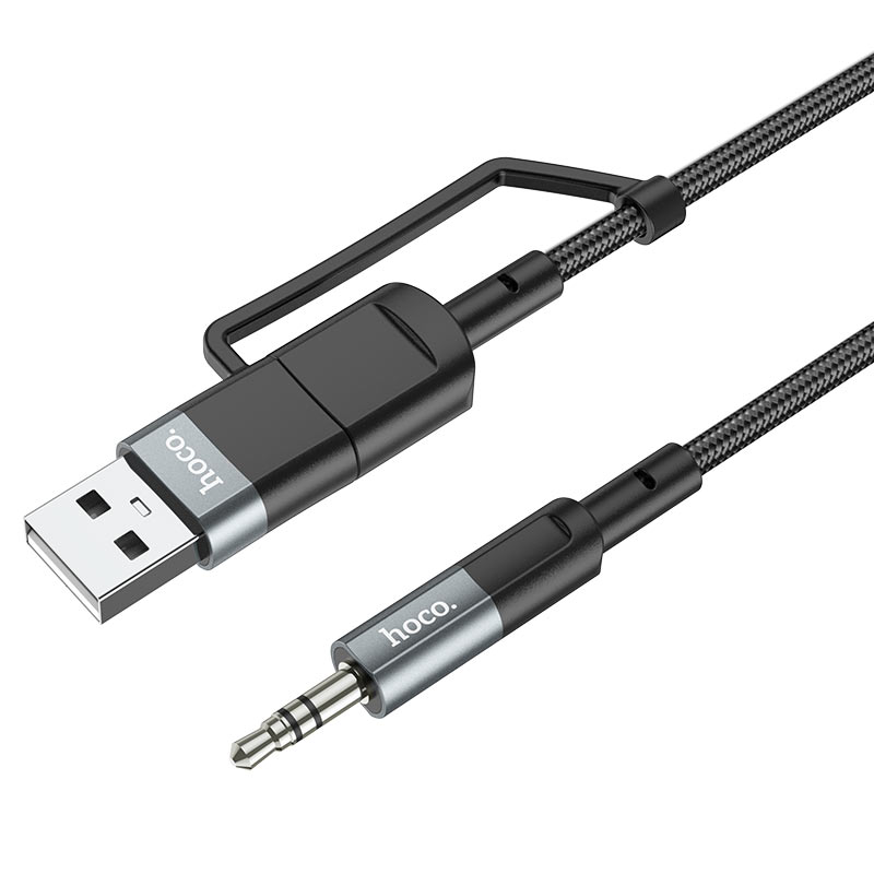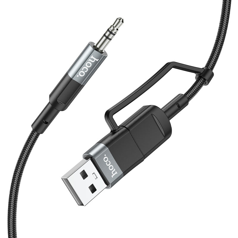 2-in-1 audio conversion cable 3.5mm male to Type-C / USB-A male.