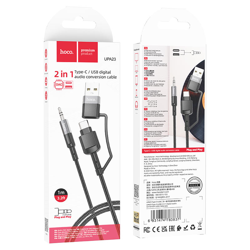 UPA23, 2-in-1 audio conversion cable 3.5mm male to Type-C / USB-A male, Hi-Fi lossless transmission, long lifespan, nylon braid and aluminum alloy connectors