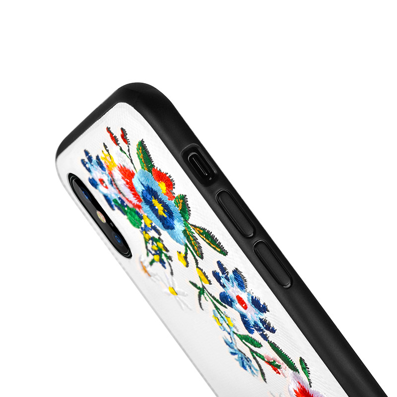Summery flowers series protective case for iPhone X TPU + PC + PU materials 1.2mm thickness embroidery handcraft easy to install and disassemble