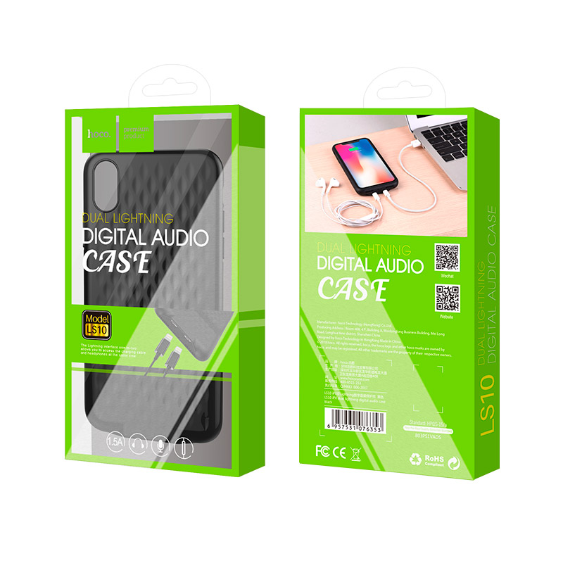 LS10 iPhone X dual interface digital audio case support original Lightning plug microphone and wire control charging current 1.5A.