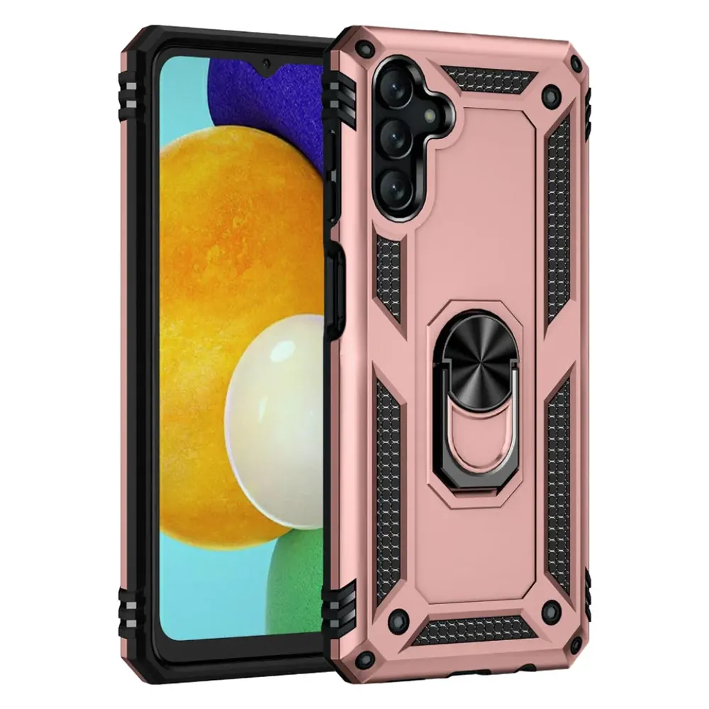 The Slim Shockproof Ring Armor Stand Phone Case for Samsung Galaxy A13 5G offers robust protection and functionality in a sleek design. Crafted to safeguard your device against drops and impacts, this case features a built-in ring holder and kickstand for added convenience.