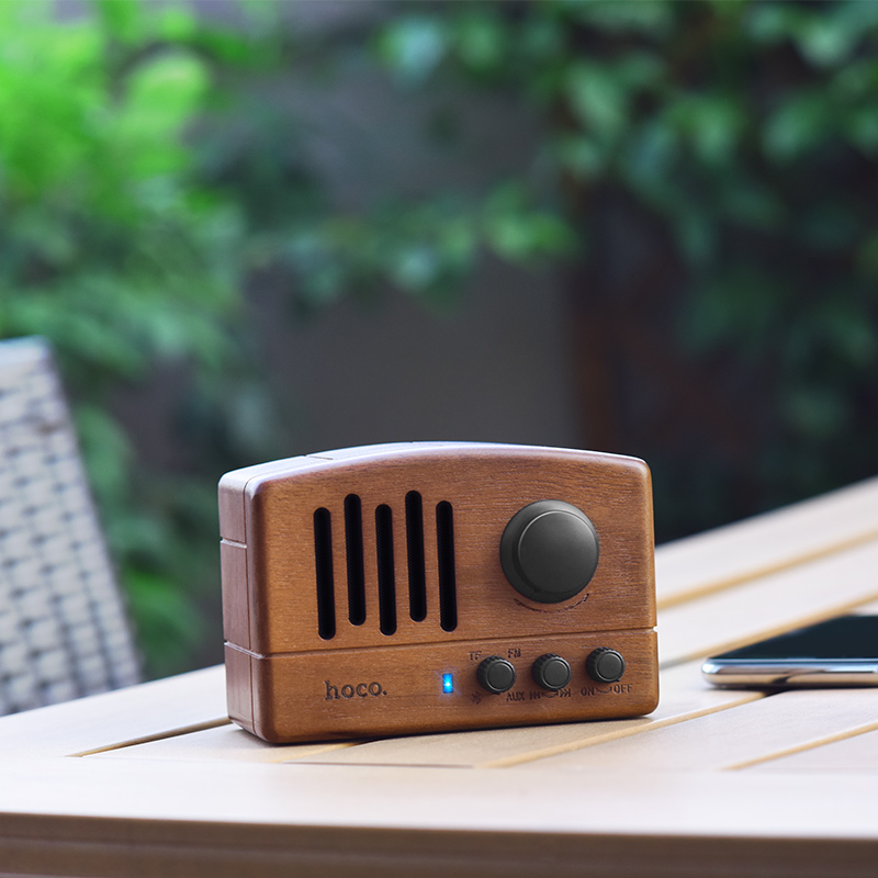 BS15 Retro Wireless V4.2 speaker solid wood vintage 5W music playback and calls TF card support AUX FM adjustment.