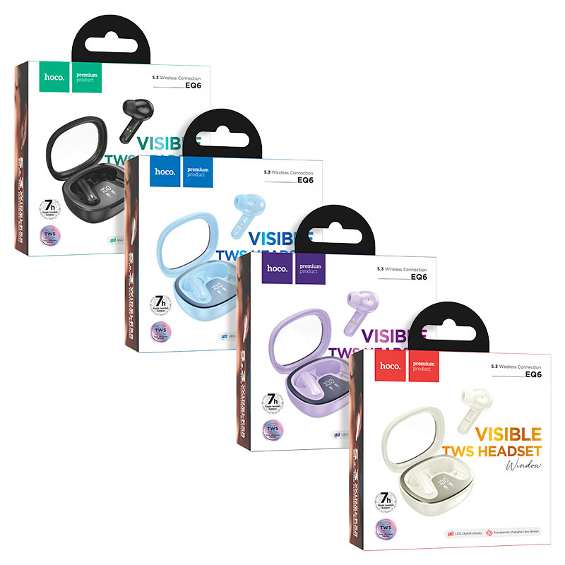 EQ6 Shadow, TWS headset, BT v5.3, charging case battery 320mAh, headset battery 40mAh, 7 hours of use and 180 hours of standby