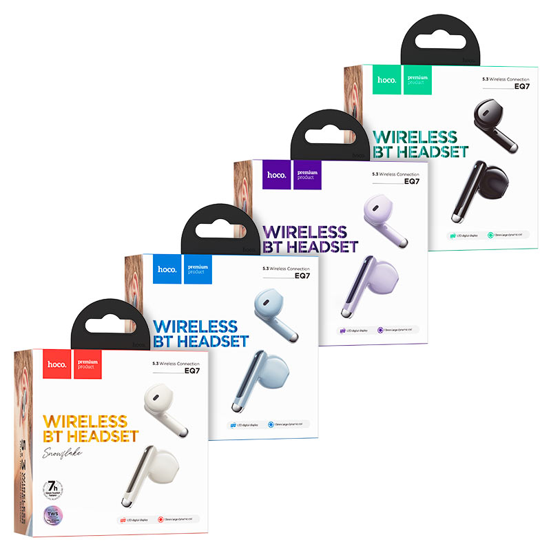 EQ7 Snowflake, TWS headset, BT v5.3, charging case battery 300mAh, headset battery 40mAh, 7 hours of use and 180 hours of standby