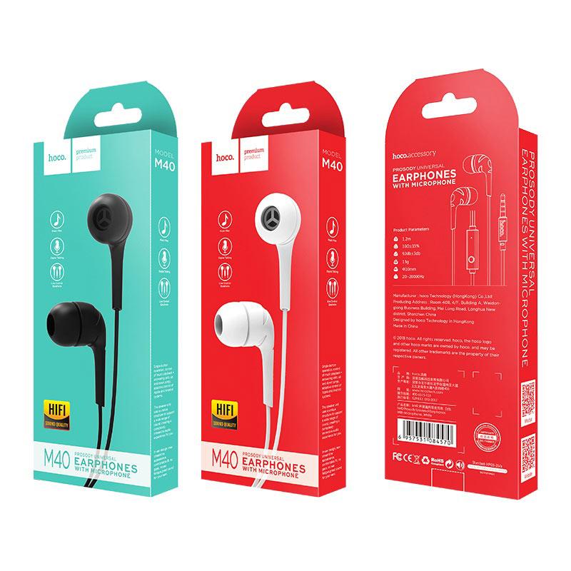 M40 Prosody universal earphones with microphone 3.5mm jack with 1.2m high elastic TPE cable one button operation control.