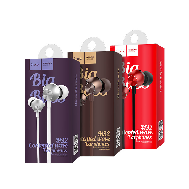 M32 Contented wave universal earphones with microphone 10mm speaker 3.5mm plug 1.2m cable for Apple and Android.