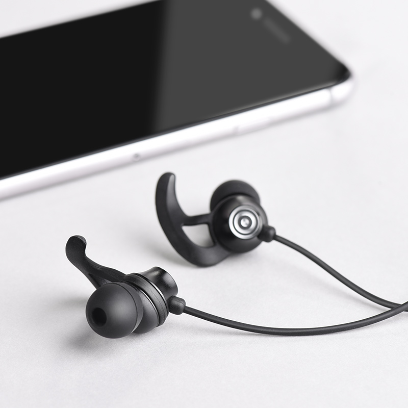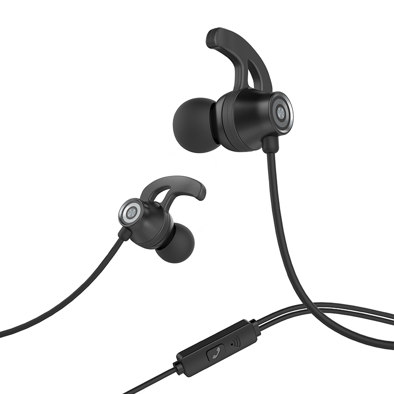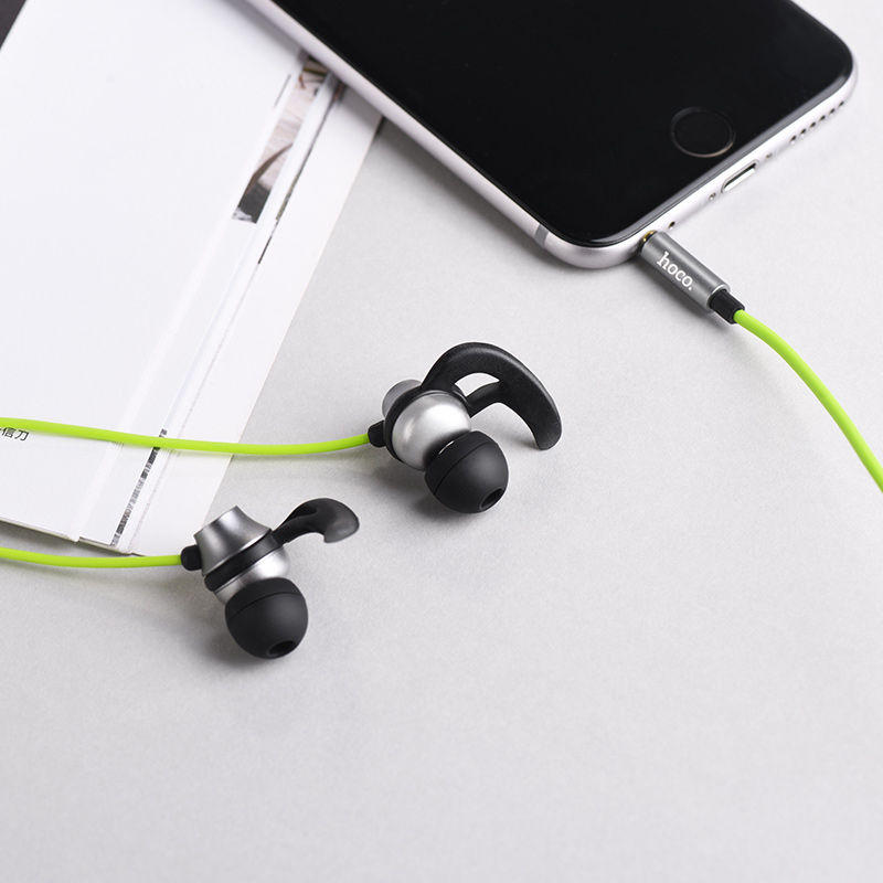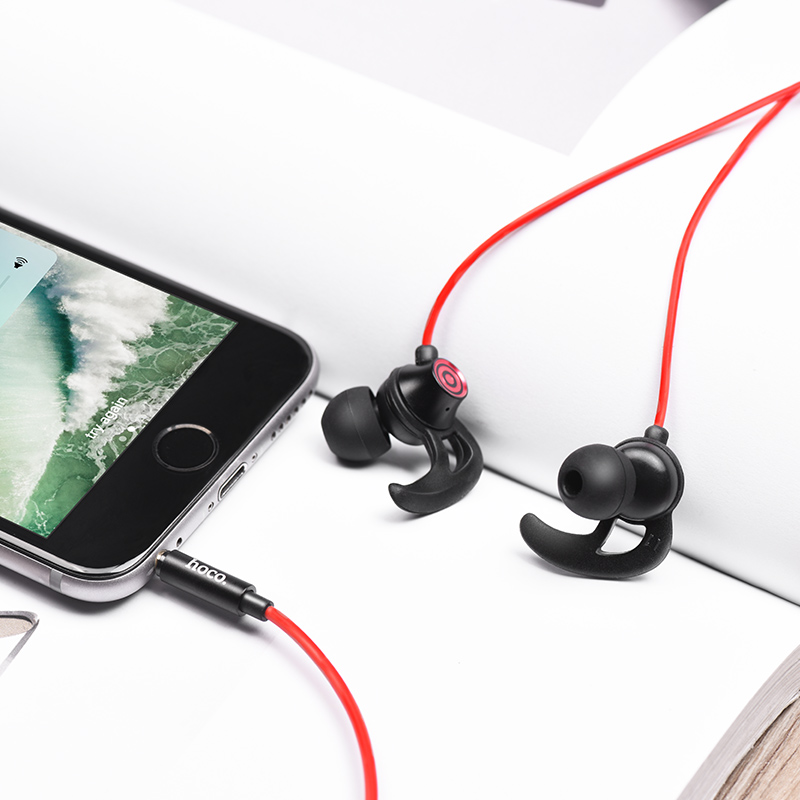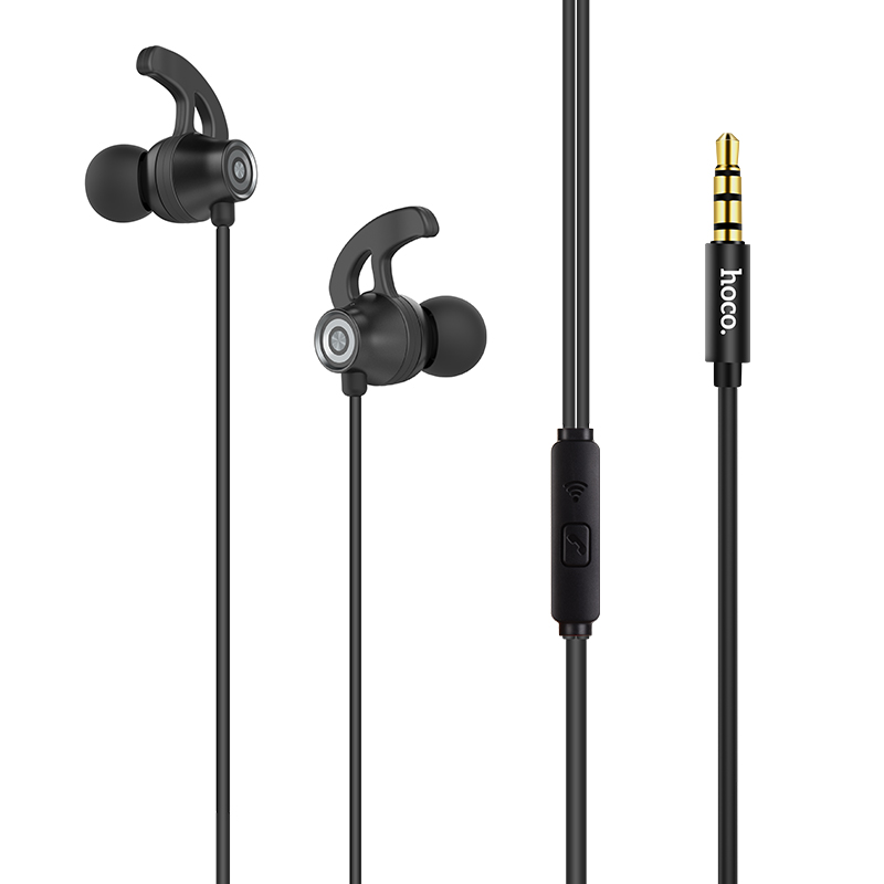 M35 Sincere joy universal earphones with microphone 3.5mm plug 1.2m cable with ear wings for Apple and Android single button operation.