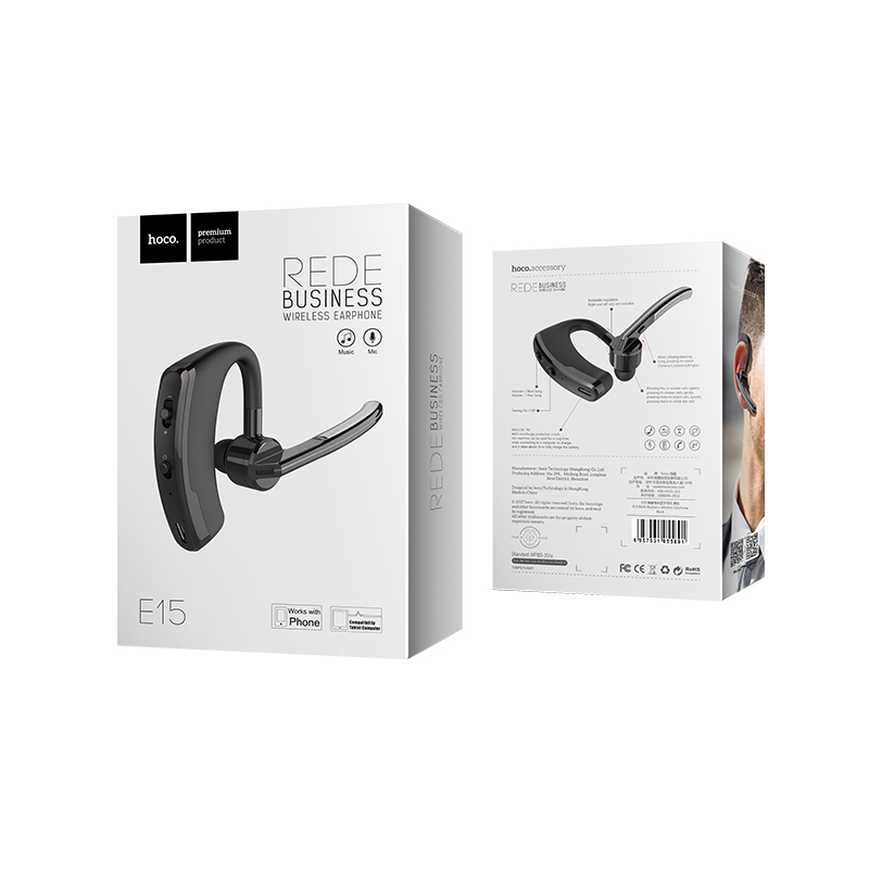 E15 Rede business wireless V4.1 earphone 90mAh 80h standby with rotating microphone rod 4h music both ears wearing.