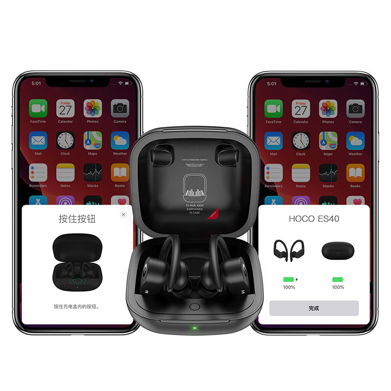 ES40 Genial TWS wireless headset with mic BT V5.0 30mAh headset battery for 5 hours of calls and music and 200 hours of standby with 400mAh charging case