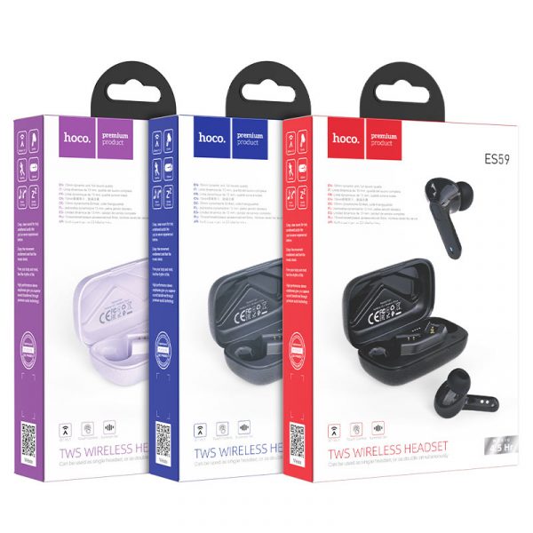 ES59 Gratified, TWS wireless headset, BT v5.1, 35mAh headset battery for 4.5 hours of calls and music, 120 hours of standby, with 300mAh charging case.