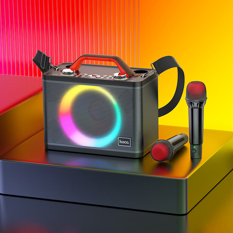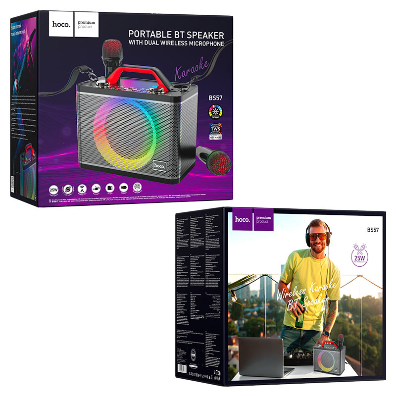 BS57 Jenny, wireless speaker, BT v5.0, with 4800mAh battery, 6 hours of work, supports BT, TF, USB flash drive, AUX playback modes, with 2 wireless microphones