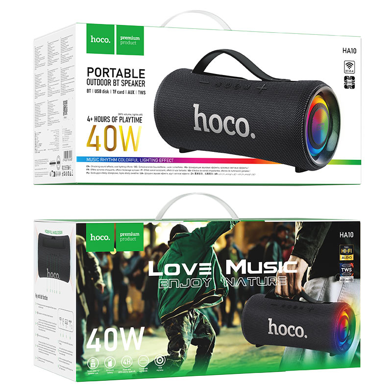HA10 Oleada, outdoor wireless speaker, BT v5.4, 4 hours of work, supports BT, TF card, USB flash drive, AUX, TWS playback modes, multiple colorful lighting modes