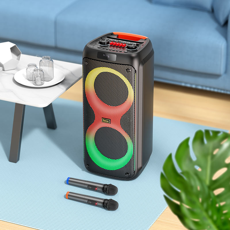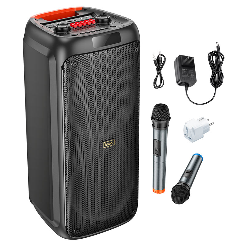 HA7 Leader, wireless speaker, BT v5.0, with 7000mAh battery, 7 hours of work, supports BT, TF, USB, AUX, TWS playback modes, with 2 wireless microphones